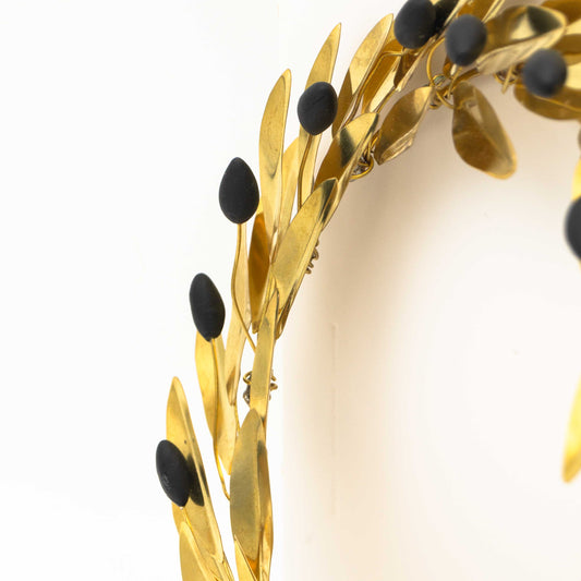Our exclusive collection of handmade olive wreaths, crafted from the finest bronze and detailed with polymer clay olives, embodies the timeless beauty and enduring spirit of the Mediterranean. Each wreath, with leaves designed and cut by hand, showcases the meticulous artistry and dedication to quality. These wall-mounted treasures bring a piece of nature's tranquility into your home, blending the rustic charm of bronze with the lifelike detail of polymer clay olives. Perfect as a symbol of peace, prosperity, and harmony, our olive wreaths make for an elegant and meaningful addition to any space, reflecting the artisan's passion for blending traditional craftsmanship with natural inspiration.